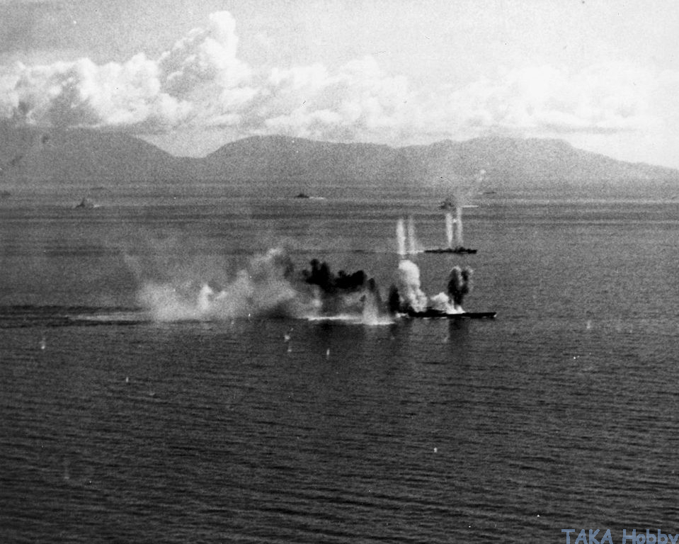 • Musashi was sunk by an estimated 19 torpedo and 17 bomb hits from American carrier-based aircraft on 24 October 1944 during the Battle of Leyte Gulf.