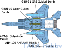 • F-15C - Improved single-seat all-weather air-superiority fighter version, 483 were built (1979~1985). The last 43 F-15Cs were upgraded with AN/APG-70 radar and later the AN/APG-63(V)1 radar.