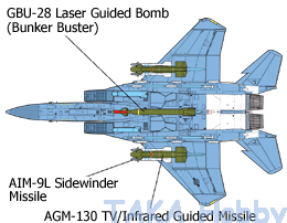 • F-15E Strike Eagle - Two-seat all-weather multirole strike version, fitted with conformal fuel tanks. It was developed into the F-15I, F-15S, F-15K, F-15SG, F-15SA, and other variants. Over 400 F-15E and derivative variants were built since 1985; still in production.
