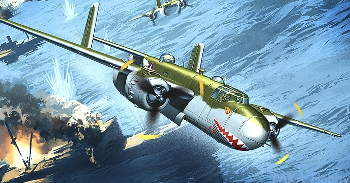 B-25B - used in the Doolittle Raid. Tail gun position were removed and replaced by a manned retractable dorsal turret on the rear fuselage, and remotely operated ventral turret, each with a pair of .50 in (12.7 mm) machine guns. 120 were built. 23 were supplied to Royal Air Force as the Mitchell Mk I.