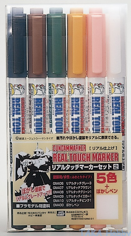 Mr Hobby GMS113 Gundam Marker Real Touch Set 2 (5 Colors + 1 Blur Pen)