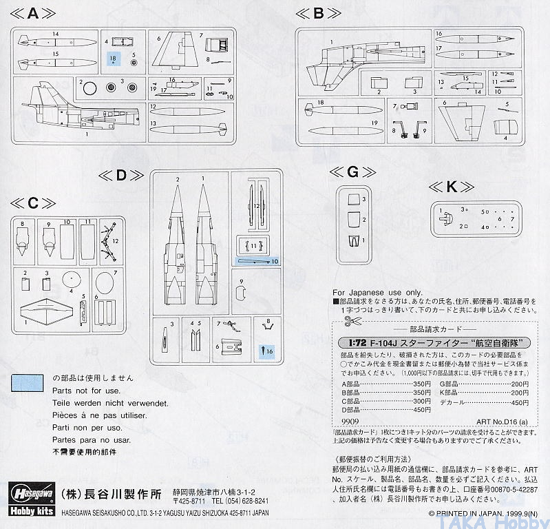 Hasegawa D16(00446) 1/72 F-104J / CF-104 Starfighter (JASDF / CAF)