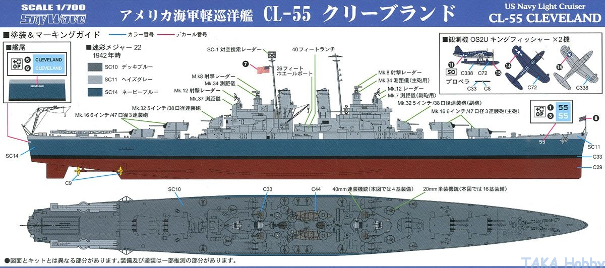 Pit-Road W208 1/700 U.S. Light Cruiser USS Cleveland (CL-55) 1942