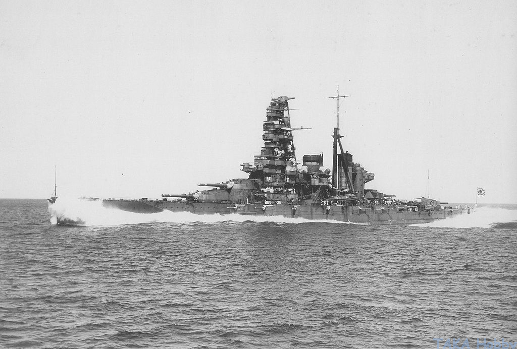 Battle of the Philippine Sea [19~20 June 1944] - Haruna was hit by two 500 lb armor-piercing bombs on 20 June 1944 from U.S. carrier aircraft. And was drydocked in Kure for repairs and refitting on 24 June 1944.