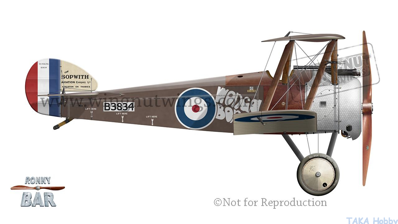 Sopwith F.1 Camel B3834 "Wonga Bonga", RH Daly (7 victories) & AF Brandon (1 victory), Manston War Flight RNAS, July-August 1917
