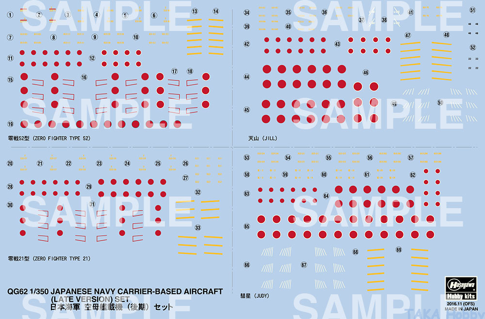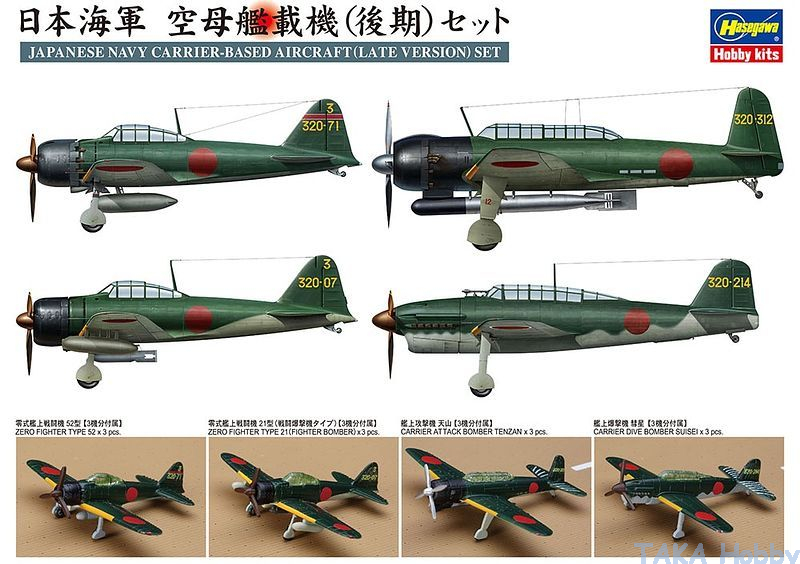 Hasegawa QG62(72162) 1/350 IJN Carrier-Based Aircraft (Late Version) Set (12 planes)