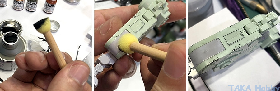 • Apply small amount of enamel paint etc. to the tip of the sponge