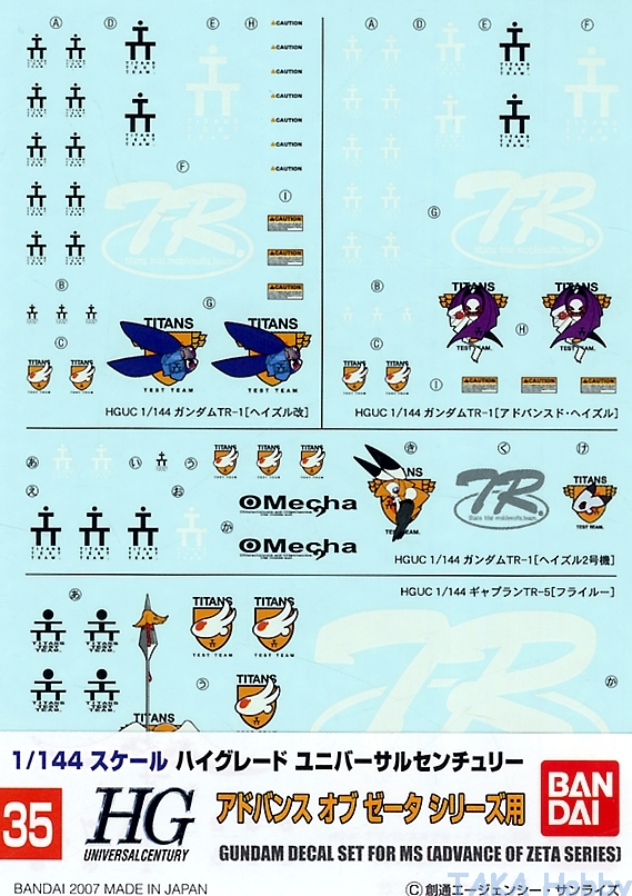 Bandai 035(149002) Gundam Decal for HGUC 1/144 Mobile Suit [Advance of Zeta Series]