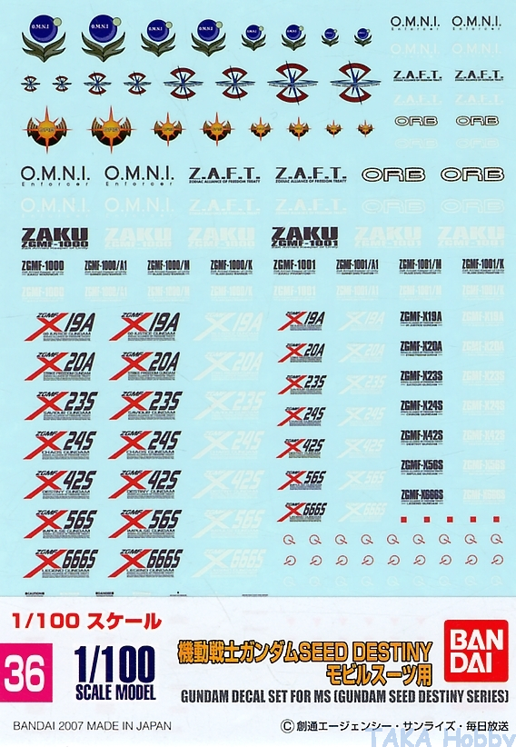 Bandai 036(149003) Gundam Decal for MG 1/100 Mobile Suit [Gundam SEED Destiny Series]
