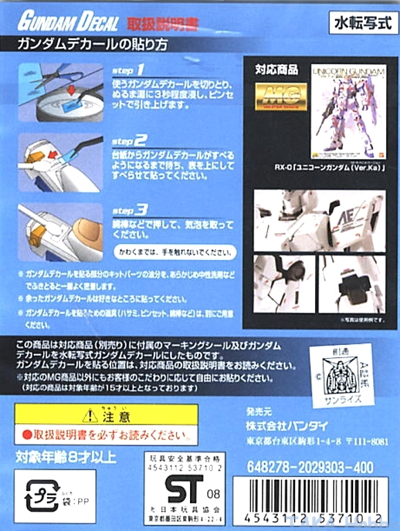 Bandai 044(53710) Gundam Decal for MG 1/100 RX-0 Unicorn Gundam "Ver.Ka"