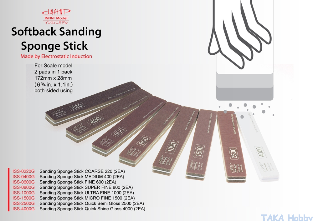 Infini Model ISS-1000G Softback Sanding Sponge Stick #1000 Ultra Fine (2pcs)