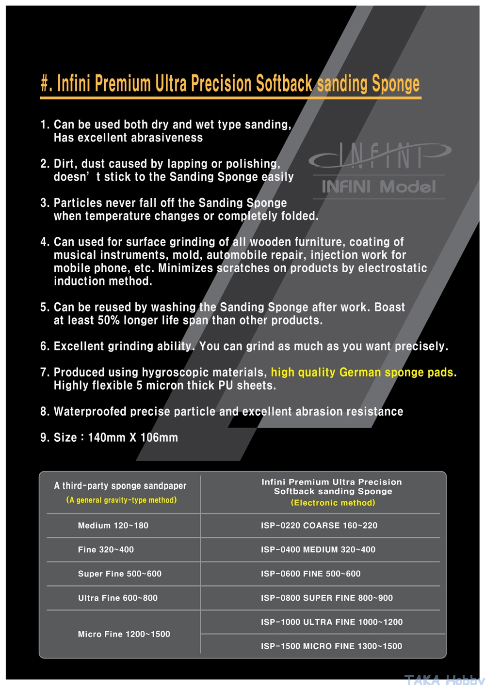 Infini Model ISP-0220G Softback Sanding Sponge Pad #220 Coarse (2pcs)