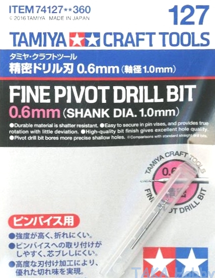 Tamiya 74127 Fine Pivot Drill Bit 0.6mm (Shank Dia. 1.0mm)