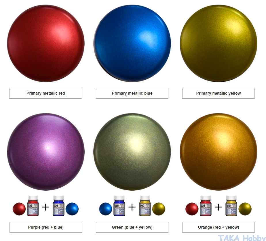 • colored metallic particles + clear medium, can be mixed with other Primary Metallic Color