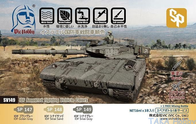 VicHobby SV149 IDF Armored Vehicle Color Set (16ml x 3 + 1 Bottle) [Water-based]