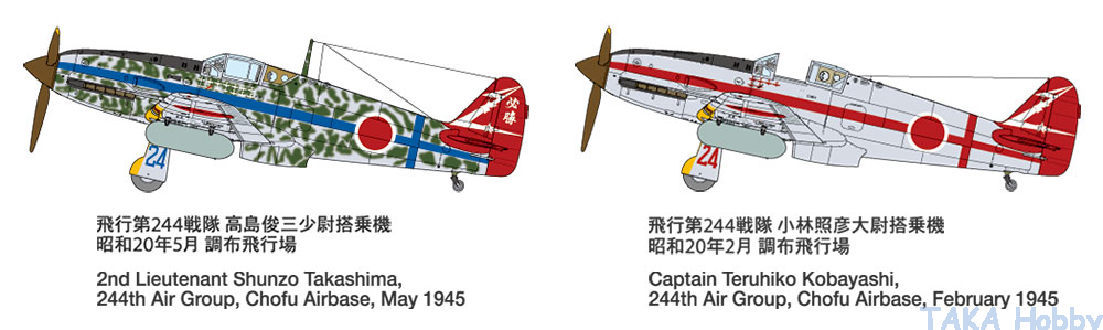 244th Sentai is one the most famous squadron (fighter regiment), based at Chofu Airbase (東京, 調布) in 1945, leading by Major Teruhiko Kobayashi 小林照彥(JAAF's youngest Sentai commander). 244th Sentai protected Tokyo from bombing by ramming the U.S. B-29 Super Flying Fortress. 244th Sentai claimed 73 B-29s shot down plus 92 damaged.