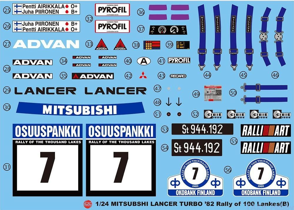NuNu(Platz) NE24017 1/24 Detail-Up Parts for Mitsubishi Lancer EX2000 Turbo "1982 Rally Of the Thousand Lakes (Rally Finland)" (PN24018)