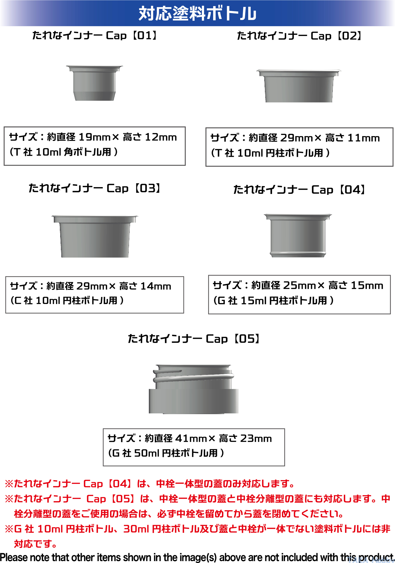 ※G社10ml円柱ボトル、30ml円柱ボトル及び蓋と中栓が一体でない塗料ボトルには非対応です。