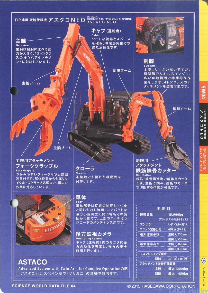 Hasegawa SW04(54004) 1/35 Hitachi Double Arm Working Machine - ASTACO NEO (Grappler & Cutter) [日立建機]